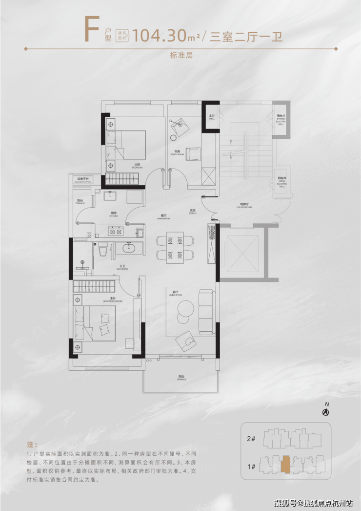 此外,同处于小高层的另一套建面 约105㎡3房 ,则以更低的置业门槛,搭配高得房率与舒适格局,兼顾日常收纳与家庭互动空间,适配首改家庭对实用与性价比的需求。