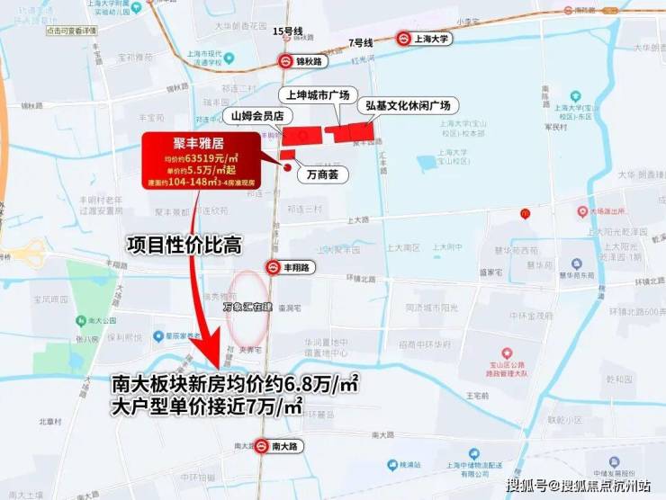 从“当下宜居”看,项目核心优势已然成型:紧邻7号线、15号线双轨交,通勤便捷度拉满;出门即享聚丰园路成熟生活圈,商超、餐饮等配套一应俱全;同时背靠上海大学,高知人群聚集的人文氛围,让居住质感再上一层。