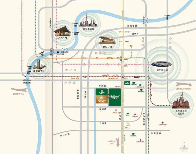 In terms of transportation, Green Treasure Garden · Feifan is located on the golden central axis of Pudong. It takes only 15 minutes by car to reach Qiantan, 25 minutes to Lujiazui, and 30 minutes to reach Zhangjiang Science City.