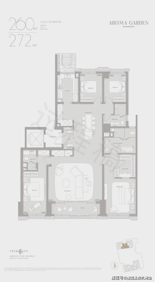 其中,A地块共计150套天际大平层,面积为建面约264-901㎡,主力户型为4房-5房。