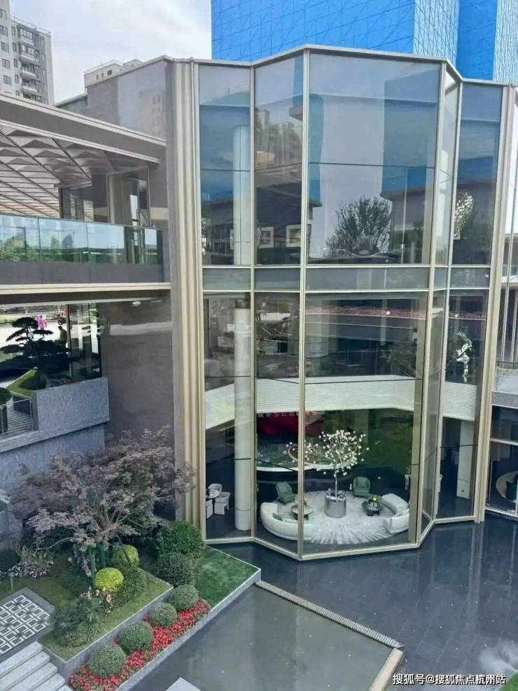 作为小区大堂,面向下沉庭院一侧的立面玻璃,通过艺术级的切割,形成水晶钻石的边界,这样的配置,放眼全杭州都难得一见。