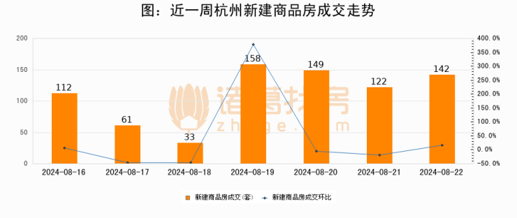 【杭州成交日报】08月22日新房成交142套、二手房185套;涨价房源72套