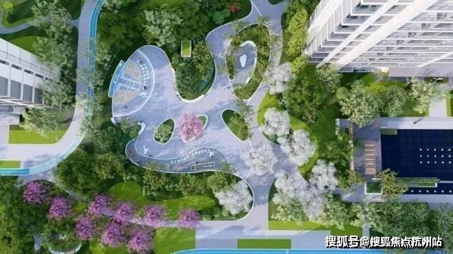 森兰·海天名筑在社区中打造不同尺度口袋公园,步移景异,让在此生活的人们感受到社区与花园融为一体的感觉,而在社区中央放大花园尺度,形成社区会客厅。