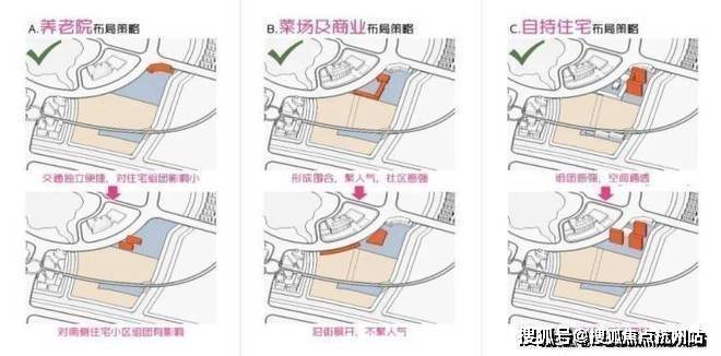 首先锁定北侧公区区域,探索养老院、菜场、商业及自持住宅的布局策略。
