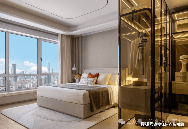 超约70㎡的南向主卧套房,是对品质生活的深层解读。将景观视野最大化地引入室内,并集成了功能完备的豪华卫浴与储物系统,主卧连通蝶形的阳台设计,实现了“套房即小家”的便利与尊享。