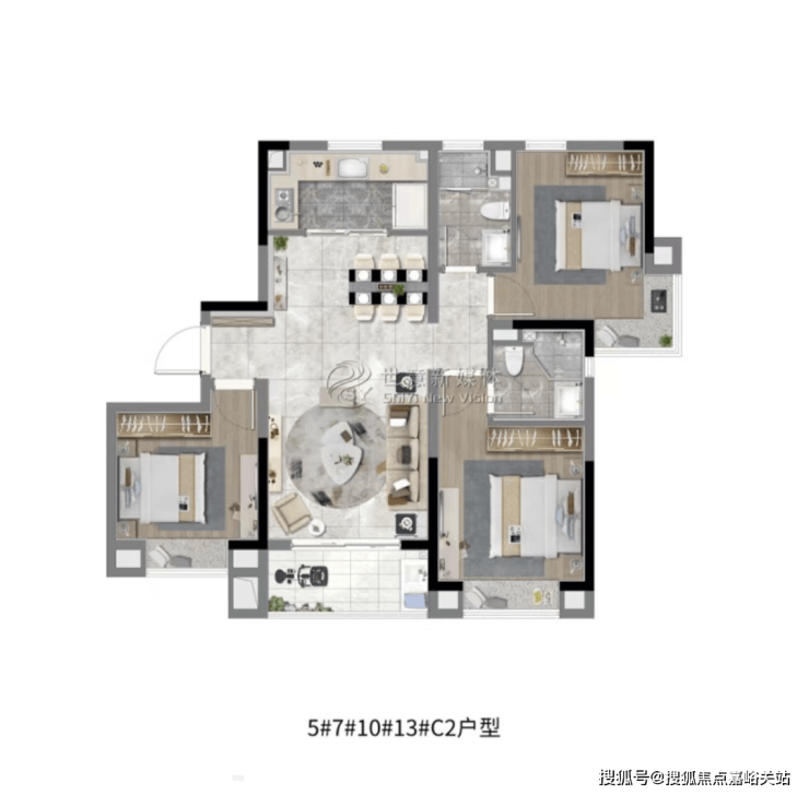 这个户型可以说是一步到位的改善户型了,三代同堂+二胎家庭同样可以拥有不错的居住体验,如果预算够得着,非常值得购买!