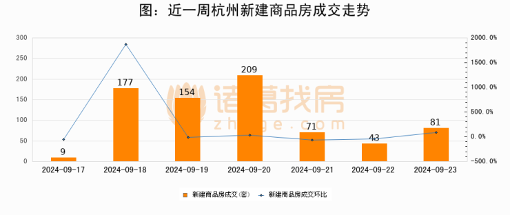 【杭州成交日报】09月23日新房成交81套、二手房228套;涨价房源137套