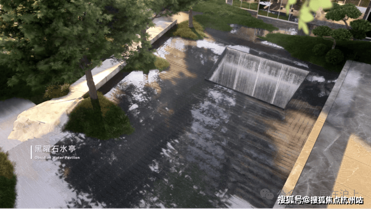 在社区内部,则通过一条自然水轴,串联六大景观节点,从约35米宽的酒店级社区大门,到内部水院以及不同主题的景观花园,步步皆景。