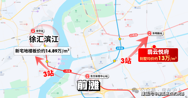 前滩3站,除了新杨思外,就是徐汇滨江,这里的大平层均价约19万+,最新的宅地楼板价约14.85万/㎡,比翡雲悦府别墅的售价还贵了约2万/㎡左右。