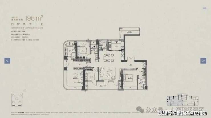 建面约195㎡,总价2700-3400万,折算单价约13.8-17.5万元/㎡