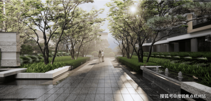 社区景观方面,项目以 "富林风华,十景多花园"为核心理念,通过现代设计语言重构《富林十景》的山水意象,将 "山、水、茶、酒、舟、市" 等江南文化符号有机融入空间序列,营造 "一步一景,移步异景" 的沉浸式归家体验。