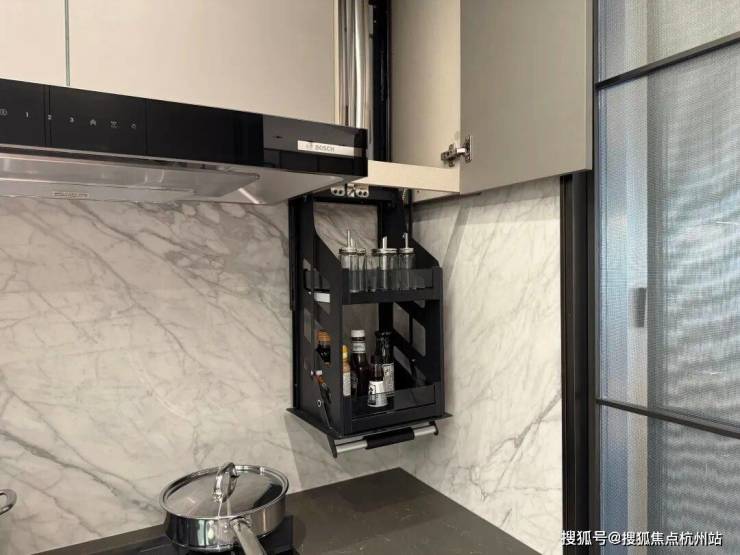 还有燃气灶旁的调味品拉篮,经常做饭的都知道,灶台旁的东西容易沾上油烟粘乎乎的,这个拉篮不占地方,也可以避免瓶瓶罐罐沾上油烟。