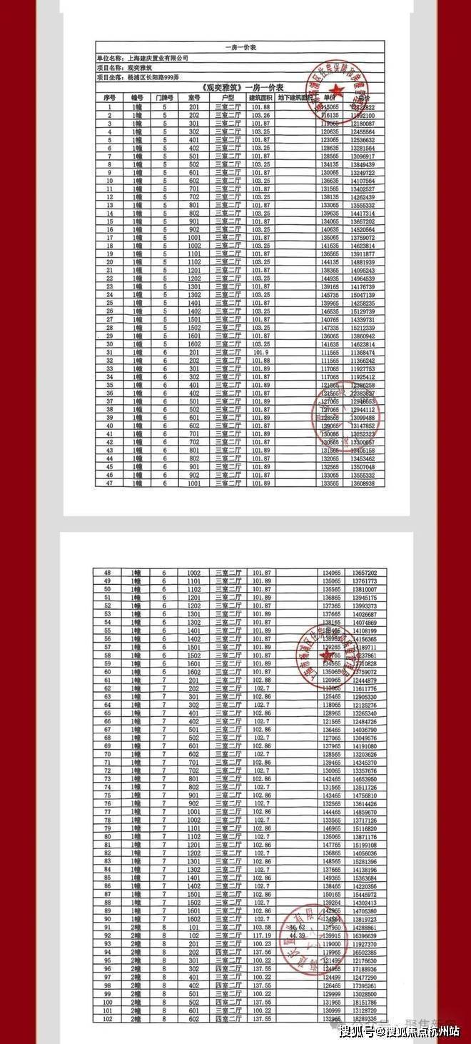 项目一房一价表▼