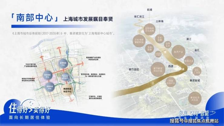 《上海市城市总体规划﹙2017-2035年﹚》中, 奉贤被定位为“上海南部中心城市”。以东方美谷和数字江海国际化产业园区, 打造全国领先的产业集群,规划建设有约2.53平方公里“上海之鱼”、约32公里“十字水街”岸线、全长约50公里田字绿廊,形成“国家生态园林城区”。