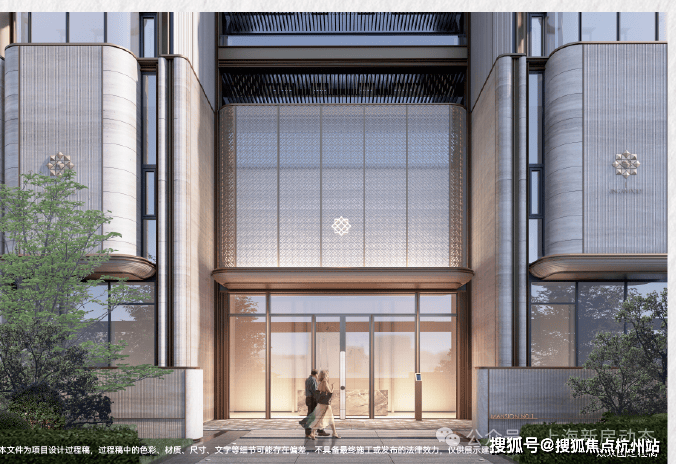 项目打造现代海派风格的外立面,线条简洁大气; 社区规划六重生活体验空间,从酒店式落客入口、镜面水庭到美学花园,旨在将高端酒店的奢享基因融入日常生活。