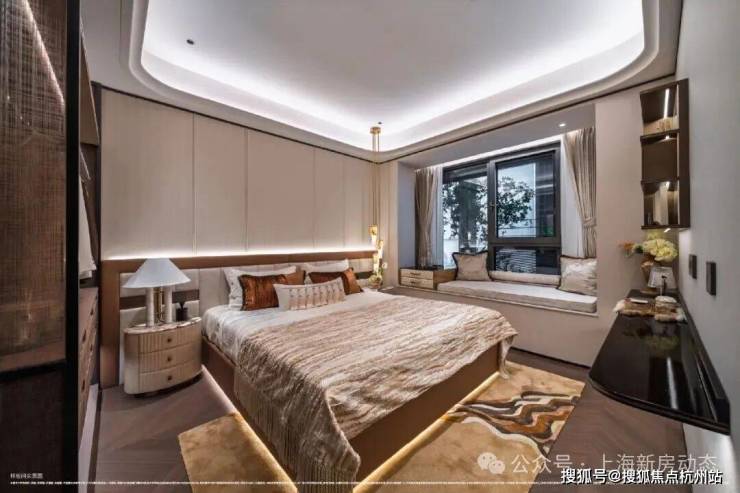 卧室则铺设海派鱼骨拼花地板,借木质肌理的温润与细腻,营造出私密领域的宁静氛围。这种“公区显质感、私域藏温度”的材质分区逻辑,恰是高端住宅设计中至关重要的一笔。