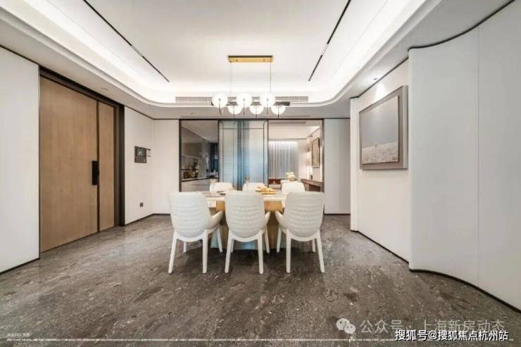 客餐厅一体化,外接南向大面积观景阳台,整个公区视野开阔,尺度阔绰。