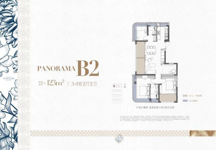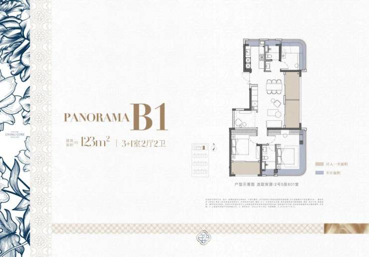 建面约123㎡3+1室两厅两卫