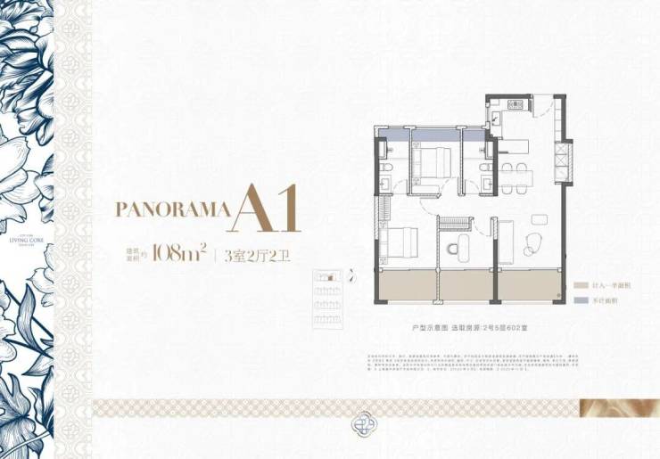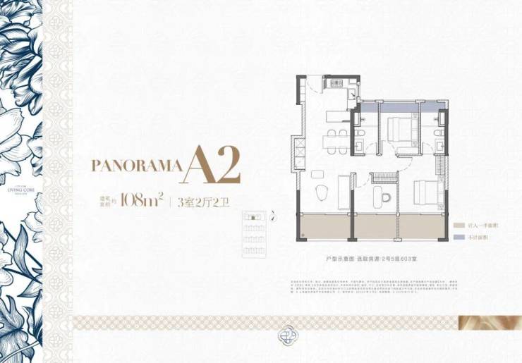 建面约108㎡三房两厅两卫