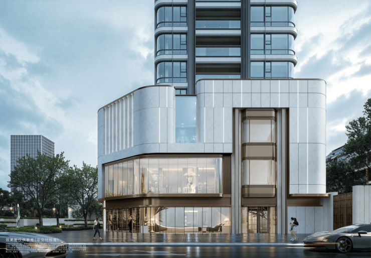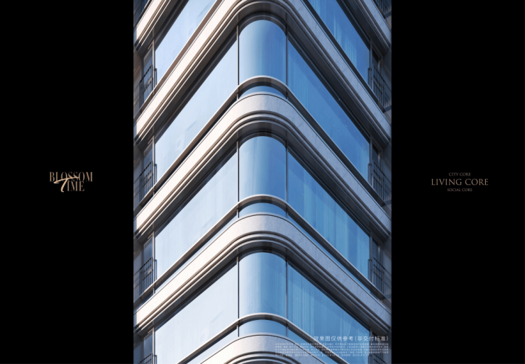 City Core: 这三层商业是 城市标志节点, 外立面大面运用了弧面铝板和玻璃幕墙,高大的柱式门头营造第一眼的庄重感,是打破传统、时尚新锐的新街道,未来这里将成为地标级符号。