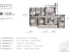 168㎡四房为王牌改善户型,四开间朝南,双联阳台达 9.2 米,餐客厅一体化设计,空间尺度感拉满,主卧配备独立卫浴、衣帽间与 270° 飘窗,双套房设计,私密性与舒适度兼具,总价约 370 万起,专为追求高品质生活的高净值家庭定制。