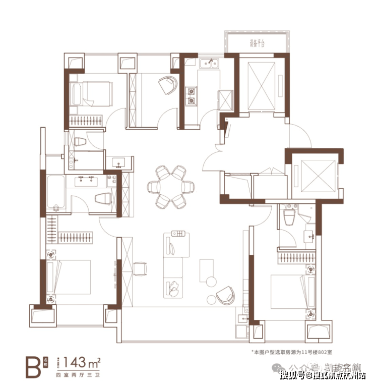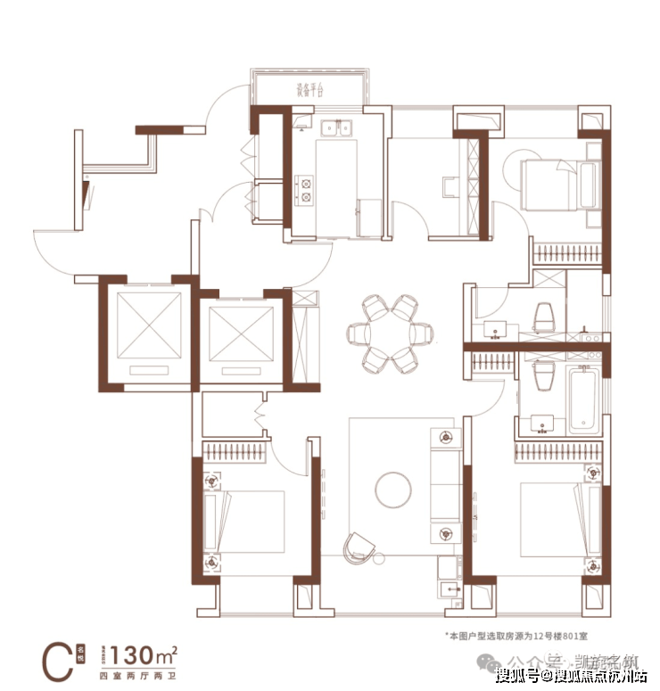 【产品信息】建筑面积约129㎡、130㎡、143㎡、144㎡宽境奢邸