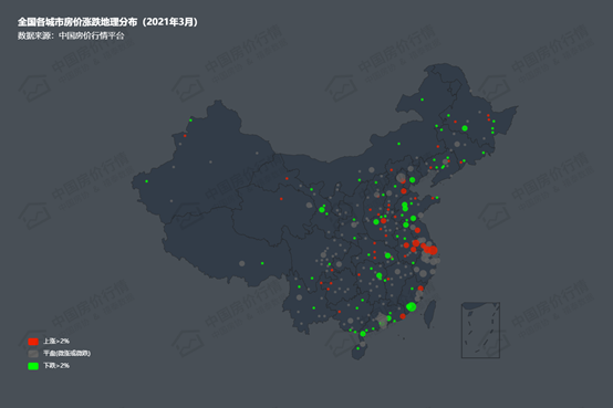 全国各城市房价涨跌地理分布图(2021年3月)