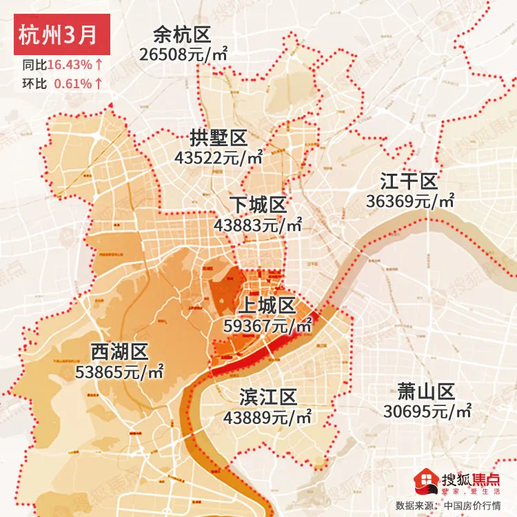 3月全国楼市房价火热!杭州3月均价为36546元/㎡!