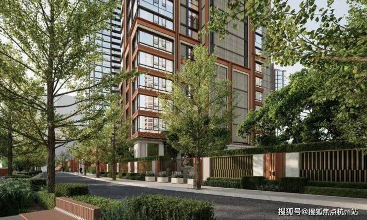 社区景观上,突破市区项目常见的「兵列树阵式」布局,通过建筑楼体的精密偏转,形成罕见的围合式社区形态。