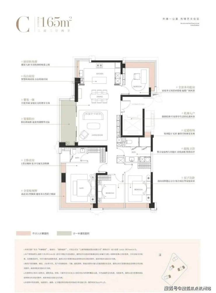 因此,外滩瑞府在建面约165㎡户型中创新推出三四房灵活定制体系。