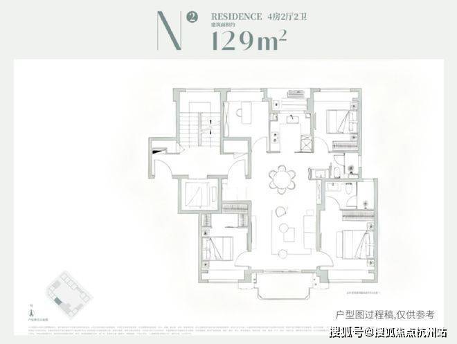 经典的四叶草布局,四开间分布在四角,兼顾私密与互动,是二胎家庭的优选。