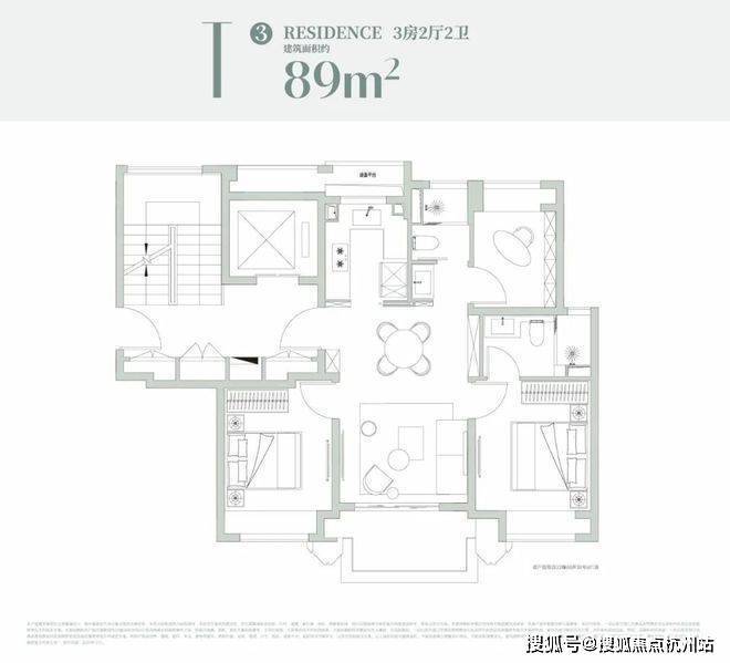 厨房、餐客厅、阳台形成直线通风廊道,南向三开间+宽尺客餐厅,轻松容纳二胎三代家庭的日常;