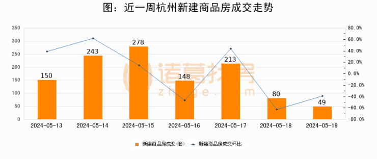 【杭州成交日报】05月19日新房成交49套、二手房204套;涨价房源121套