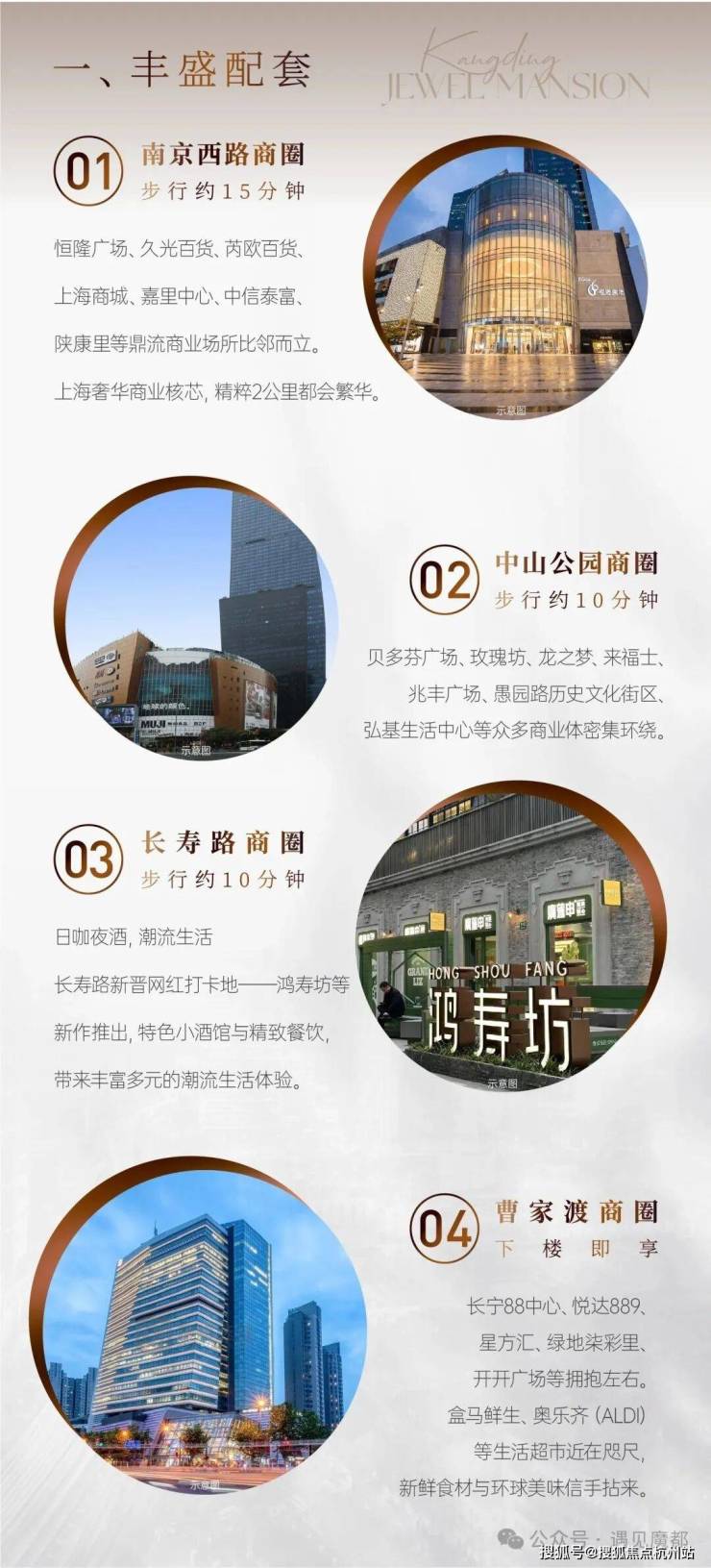 周边配套:周边有南京西路、中山公园、长寿路、曹家渡等商圈。南京西路商圈有恒隆广场、久光百货等;中山公园商圈有贝多芬广场、龙之梦等;长寿路商圈有鸿寿坊;曹家渡商圈有长宁 88 中心、悦达 889 等,还有盒马鲜生、奥乐齐等生活超市。