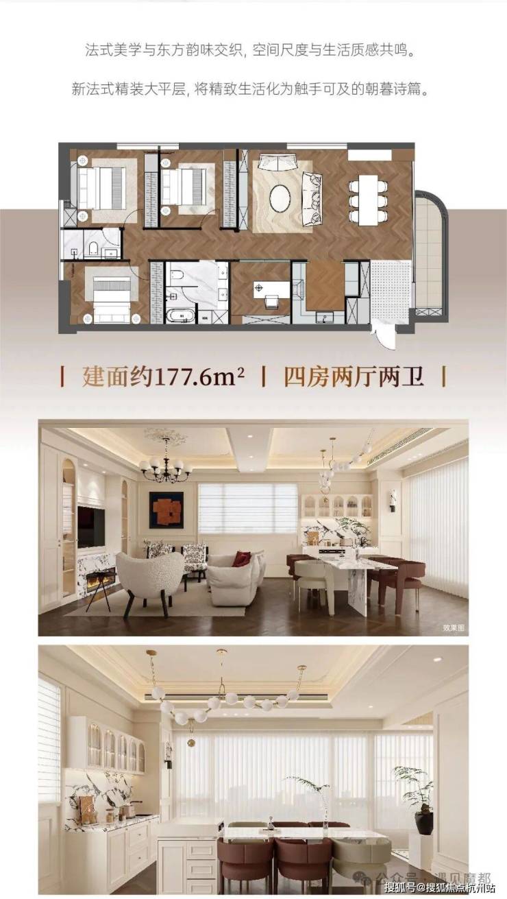 法式精装:以法式精装大平层为特色,精致雕花、优雅线条等尽显法式浪漫与奢华,精装品质高。