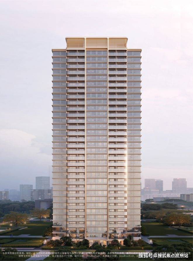 建筑方面,海上·清和玺采用独特的香槟金色格栅塔冠及壁柱,以香槟金与白色调搭配,形成“金镶玉”的立面造型,充分以“玺系”的品质结合在地文化海派以及人群品质需求。大面积的玻璃与精致的层间金属飘板相结合,营造出公建化的立面视觉效果,既保证了通透性,温润雅致且历久弥新。