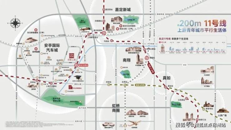 通过11号线,本项目2站即可直达嘉定新城,4站南翔印象城,11站真如副中心、17站徐家汇!