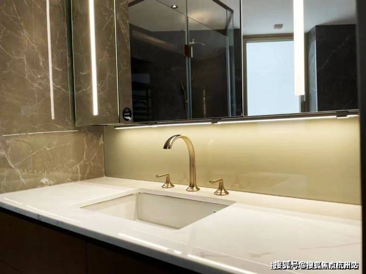 细节方面,项目采用了拉米娜的进口电视背景墙、顶级奢侈品牌卡莉斯塔的主卫龙头、ABB的智能化控制、LG的厨房台面,甚至是阳台的电动晾衣架、水槽、吊柜都是交付标准.