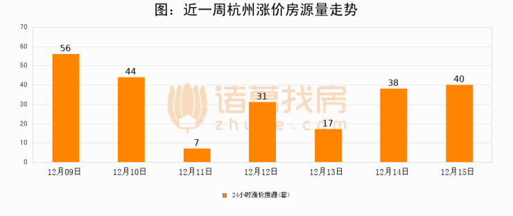根据诸葛找房数据显示,杭州24小时涨价房源量为40套,较12月14日增加2套,环比上涨5.3%。与此同时,涨价房源占比小幅扩大,业主信心有所提升。