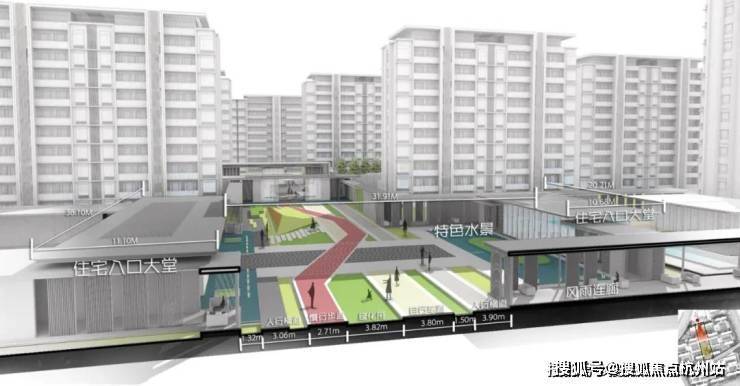 据悉社区由 自持住宅、可售住宅、社区配套 三大功能组合而成,北区为公区自持配套区,中区为住宅社区,南区为住宅社区及配套。
