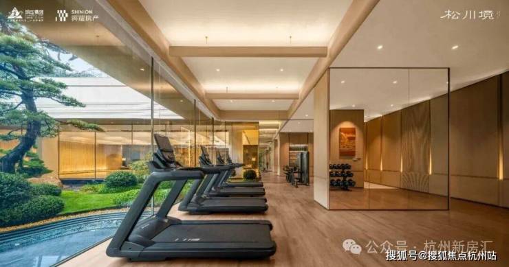 下楼到 「松氧馆」 健身房慢跑,透过270°全景玻璃幕,心赏 「澜庭」 下沉式庭院,约7米高溪山流瀑,5棵黑松高低错落,勾画出艺术馆般的静逸场域。松风水雾间,运动不再是「面壁思过」,在沉寂中厘清思绪,迸发万千灵感火花,每一次吐纳都是无尽疗愈。