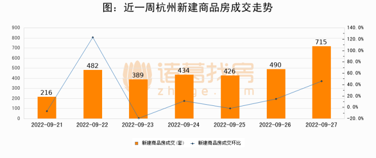 【杭州成交日报】09月27日新房成交715套、二手房198套;涨价房源24套
