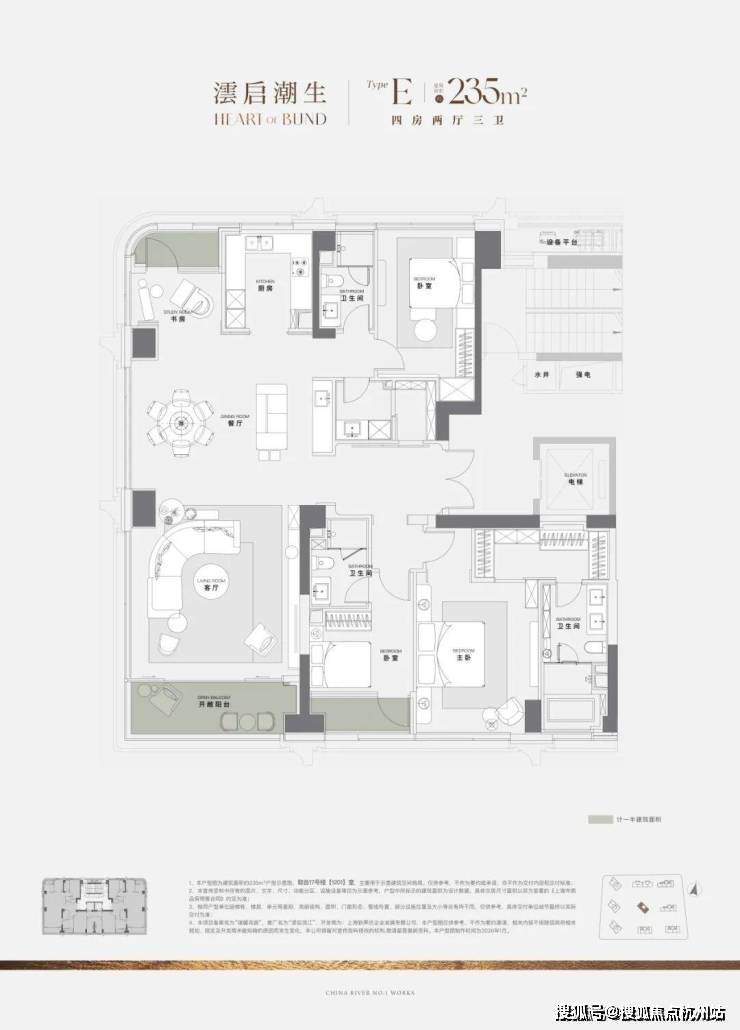 KING235 作为此次四批次全景舱大宅的重磅之作,雄踞社区 9 栋围合式布局的正中央核心位置,是当之无愧的滨江王座。