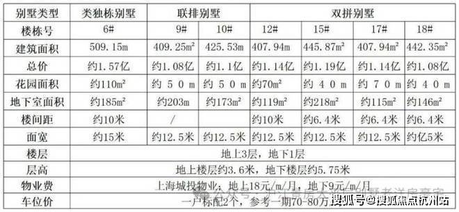 D1地块露香园云宸别墅栋数和价格