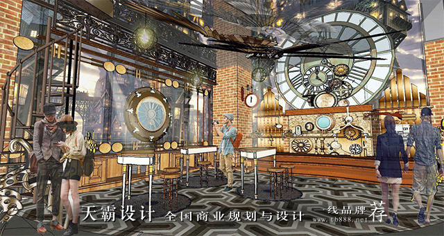 这条室内街区在与热电厂历史渊源作呼应的同时,又在设计中融入了时下较新潮的蒸汽朋克精神,既对文化有了很好的传承,又渗透进大悦城年轻、潮流的价值观。金属是表现工业风的重要材质,在空间入口处,铁艺吊灯、金属框架还有复古齿轮,都凸显着蒸汽朋克的硬朗,打造一条时光隧道让人们瞬间从时尚潮流的现代生活移步至粗狂不羁的旧工业时期。