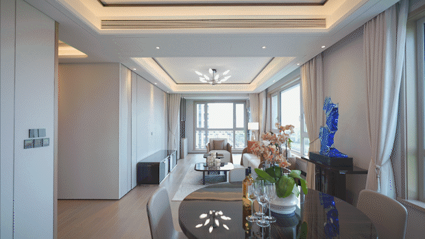 为了放大景观效果,该户型特意营造了L型巨幕景观面,270°巨幕视野,目及之处皆是绿意。