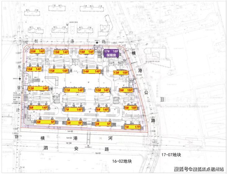 17-07地块: 占地面积约2.76万方,总建筑面积约10.96万方,容积率2.5, 拟建6栋18F高层住宅、 1栋18F保障房、1栋14F酒店、3栋2-3F商业以及若干配套用房!