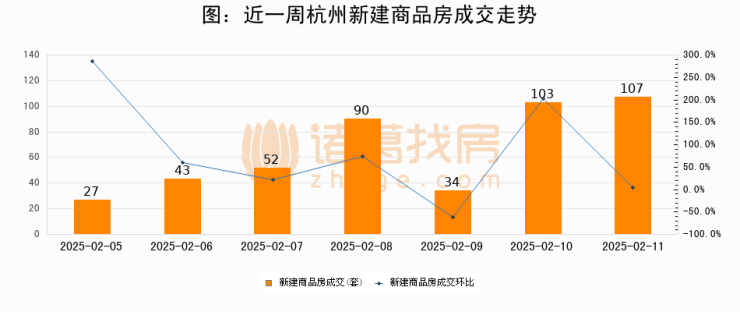 【杭州成交日报】02月11日新房成交107套、二手房142套;涨价房源52套