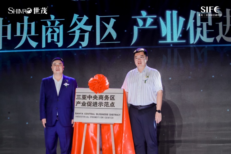 发布会尾声,三亚中央商务区管理局党委委员、副局长陈默先生、世茂海峡发展公司海湾片区总经理张培峰先生共同进行三亚中央商务区产业促进示范点揭牌。