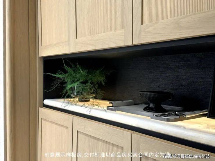 侧边交付了通顶玄关柜,玄关柜台面材质为发光云石台面 ,整体的光泽和美感十足。预约方式:提前拨打官方唯一热线400-8 385-95 8,官方咨询热线:400- 838 5- 958(一对一官方热情服务),官方预约电话:400 -838-5958,售楼处营销中心:400-8385- 9 58